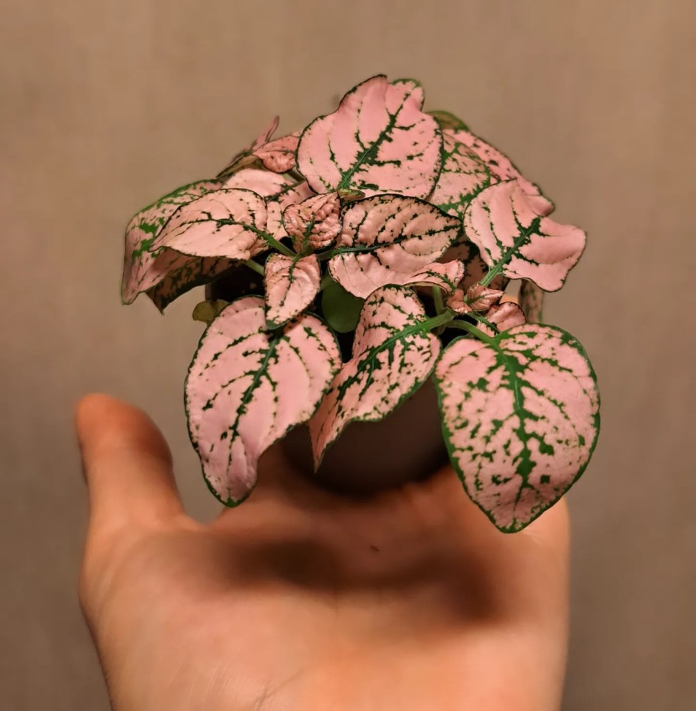 2. Fittonia – den lille drama queen’en Fittonia, ofte kalt “nervplante”, har vakre, mønstrede blader i grønt, rosa eller hvitt. Den er kjent for å kollapse dramatisk når den er tørr, men den kommer raskt tilbake til livet når den får fukt. I en lukket krukke holder fuktigheten seg jevn, og Fittonia får skinne uten drama.