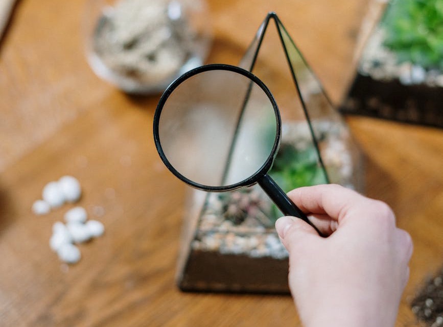 Hvis plantene vokser for raskt eller ser ut til å bli for store for terrariet, kan det være nødvendig å beskjære dem forsiktig for å kontrollere veksten. Fjern også eventuelle visne eller døde blader for å fremme sunn vekst.
